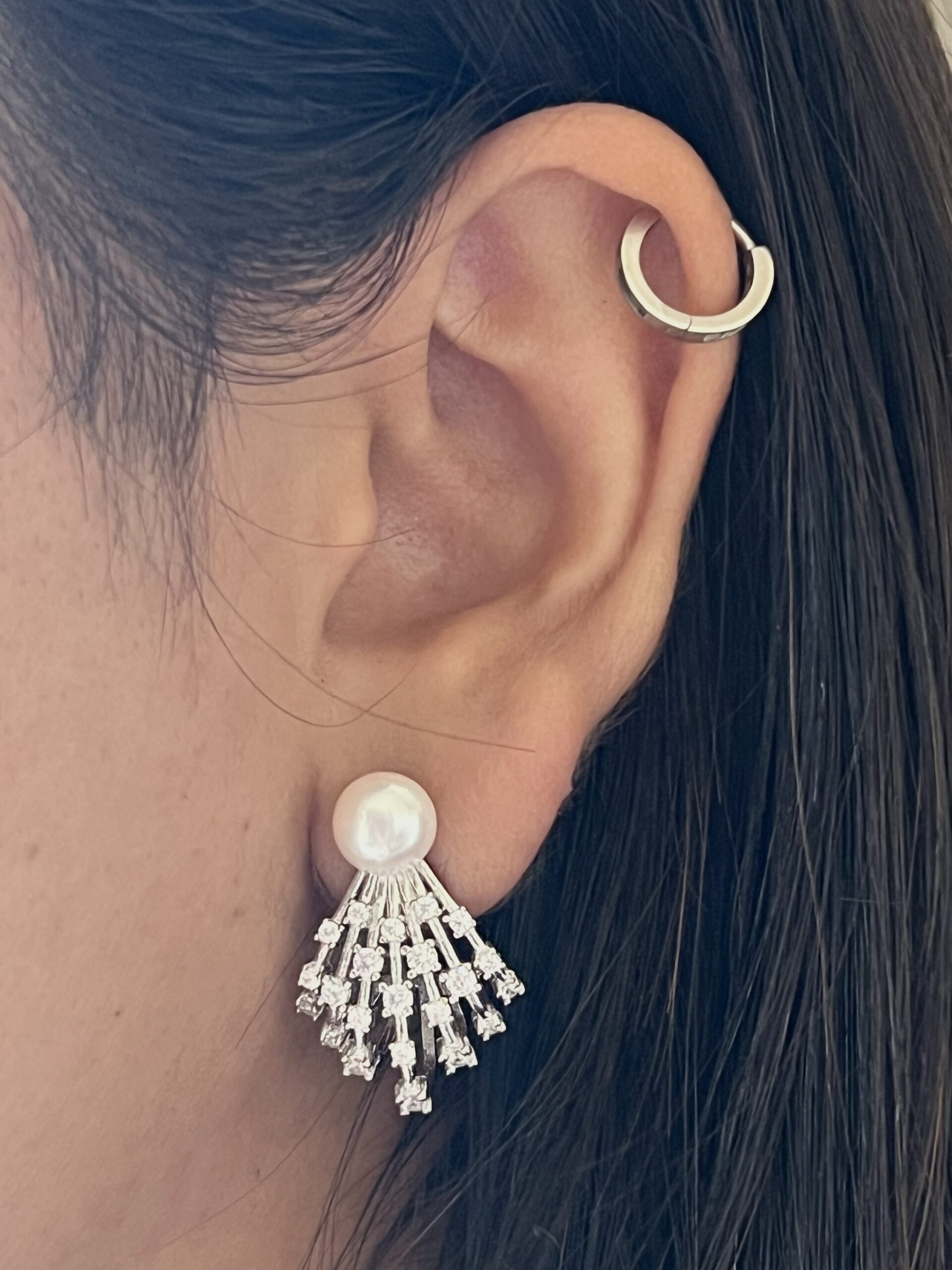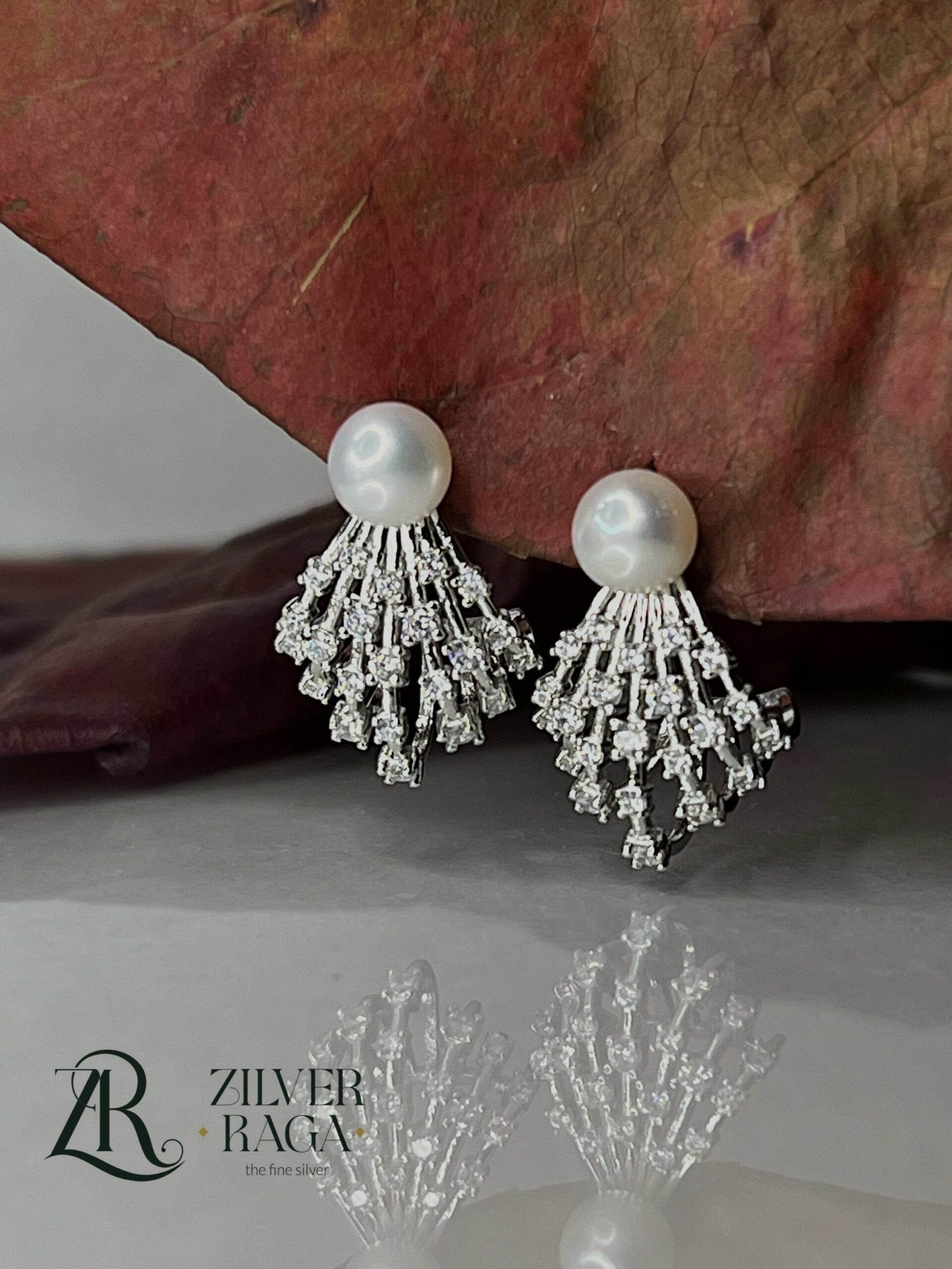 Sparkling Pearl Studs in 925 Sterling Silver.